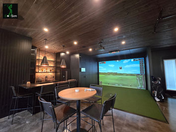 This commercial facility features a 16ft wide x 10ft high golf simulator screen with custom designed wall and ceiling panels. This facility consists of several multiplayer golf studio bays featuring Protee VX Launch Monitor.